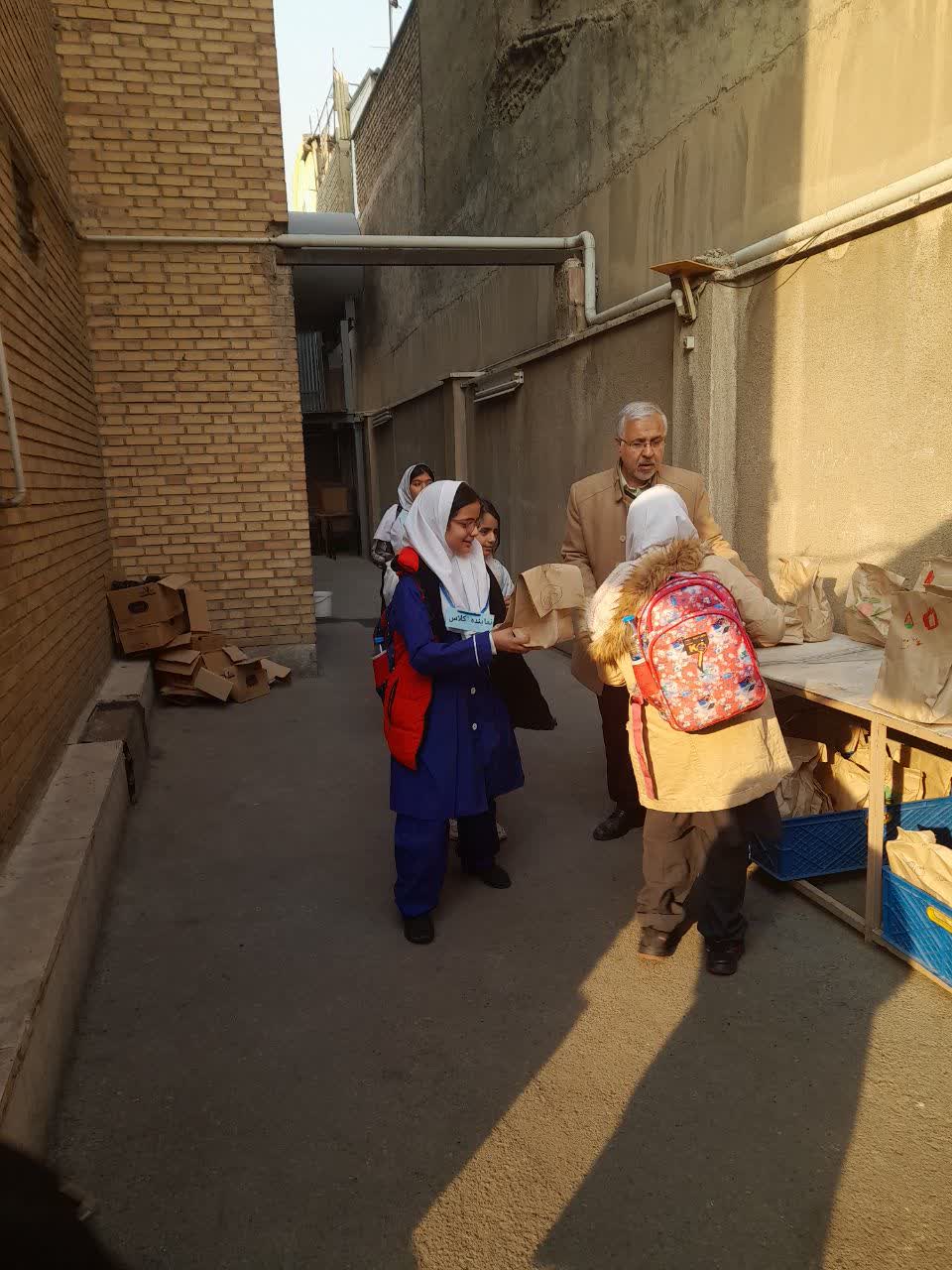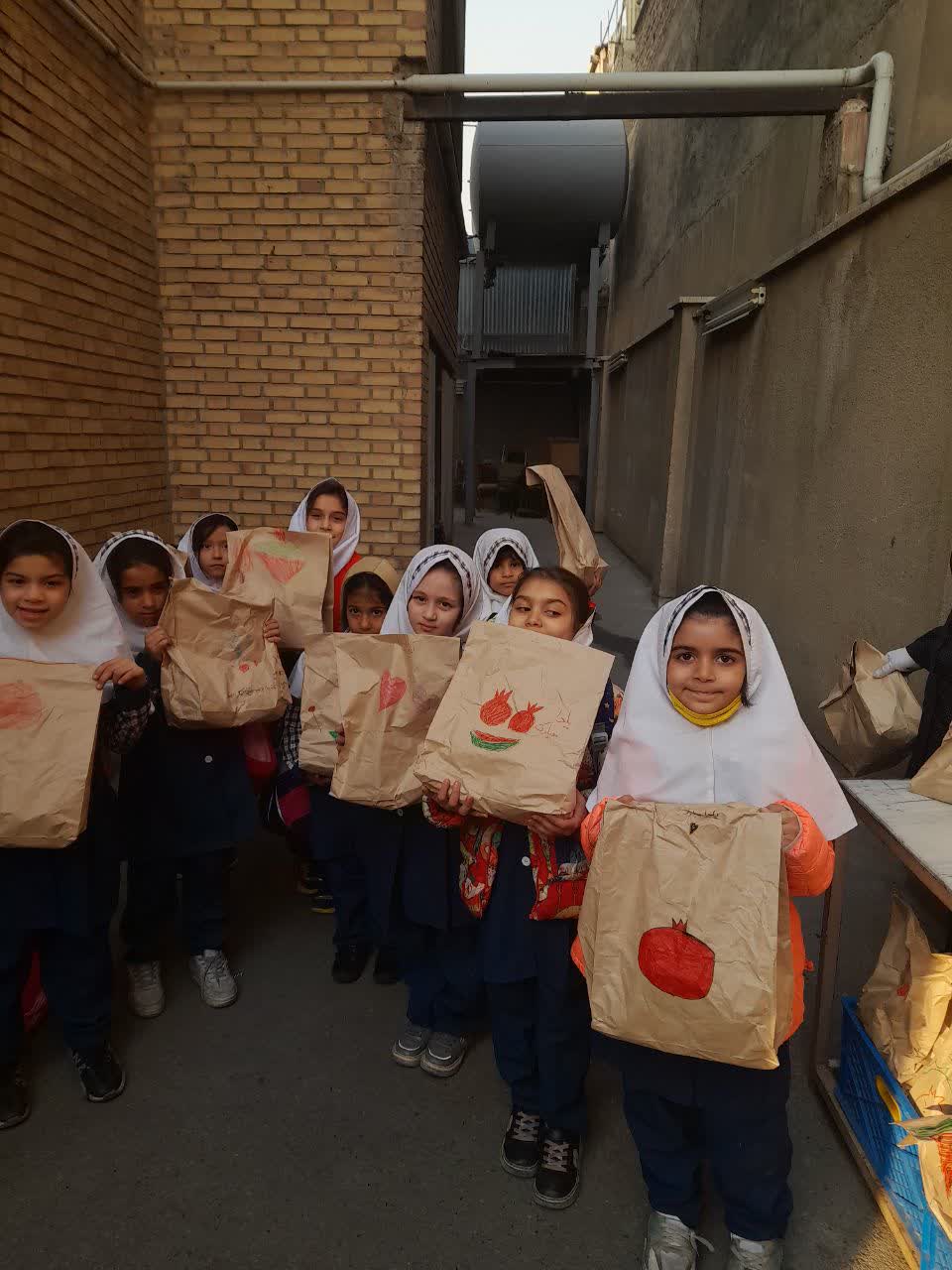 هدیه بسته اجیل ومیوه توسط دانش اموزان دبستان غیر دولتی مصباح به دانش اموزان دبستان امیر کبیر